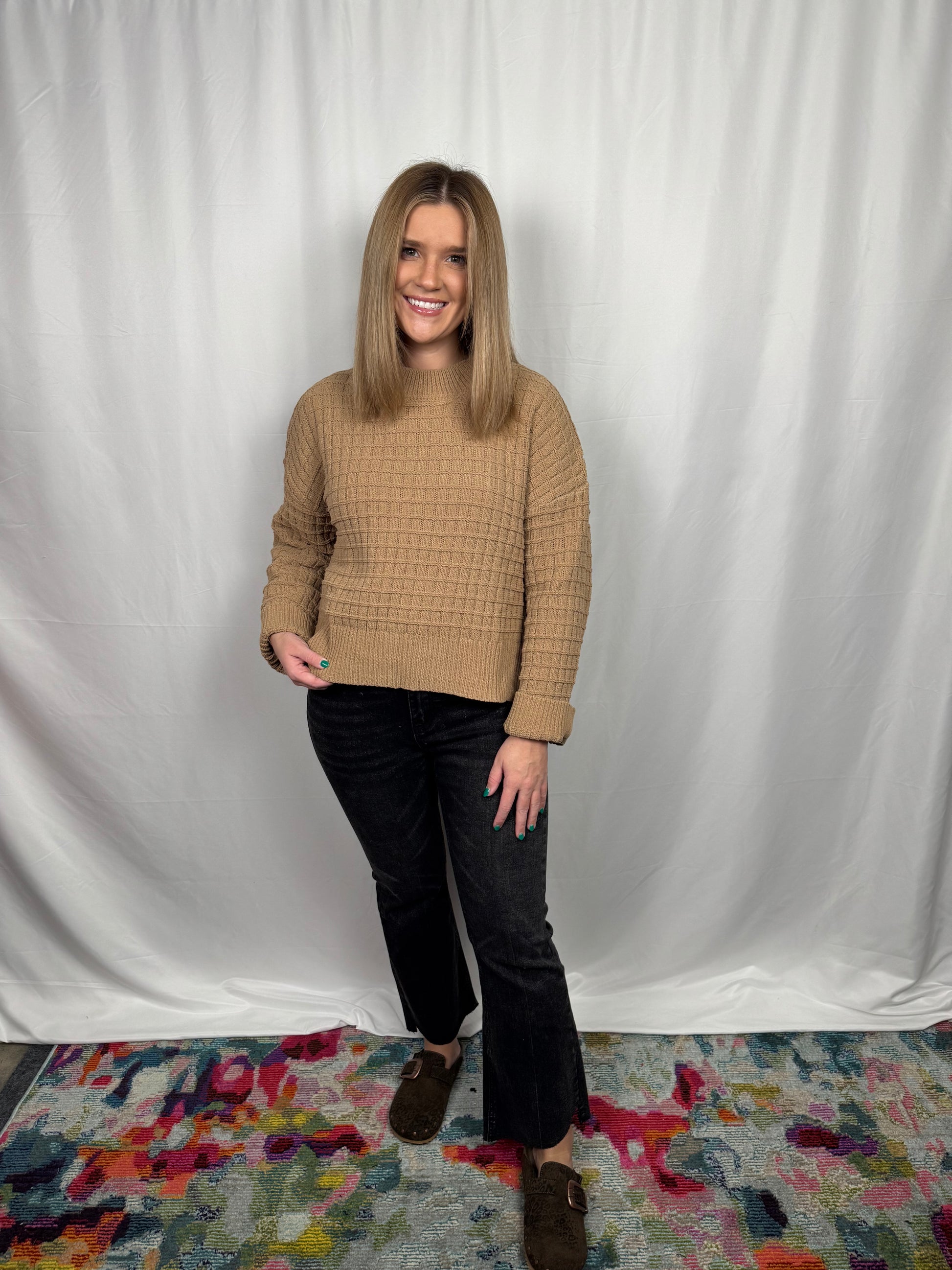 - Frayed, split hem design